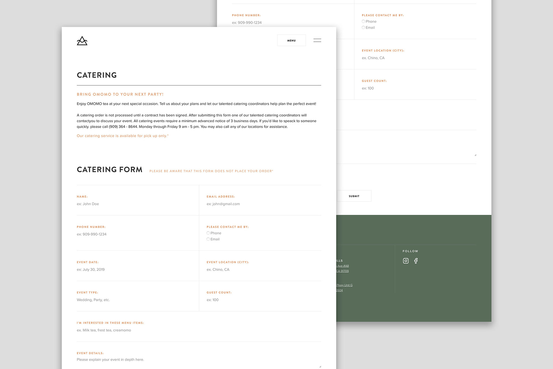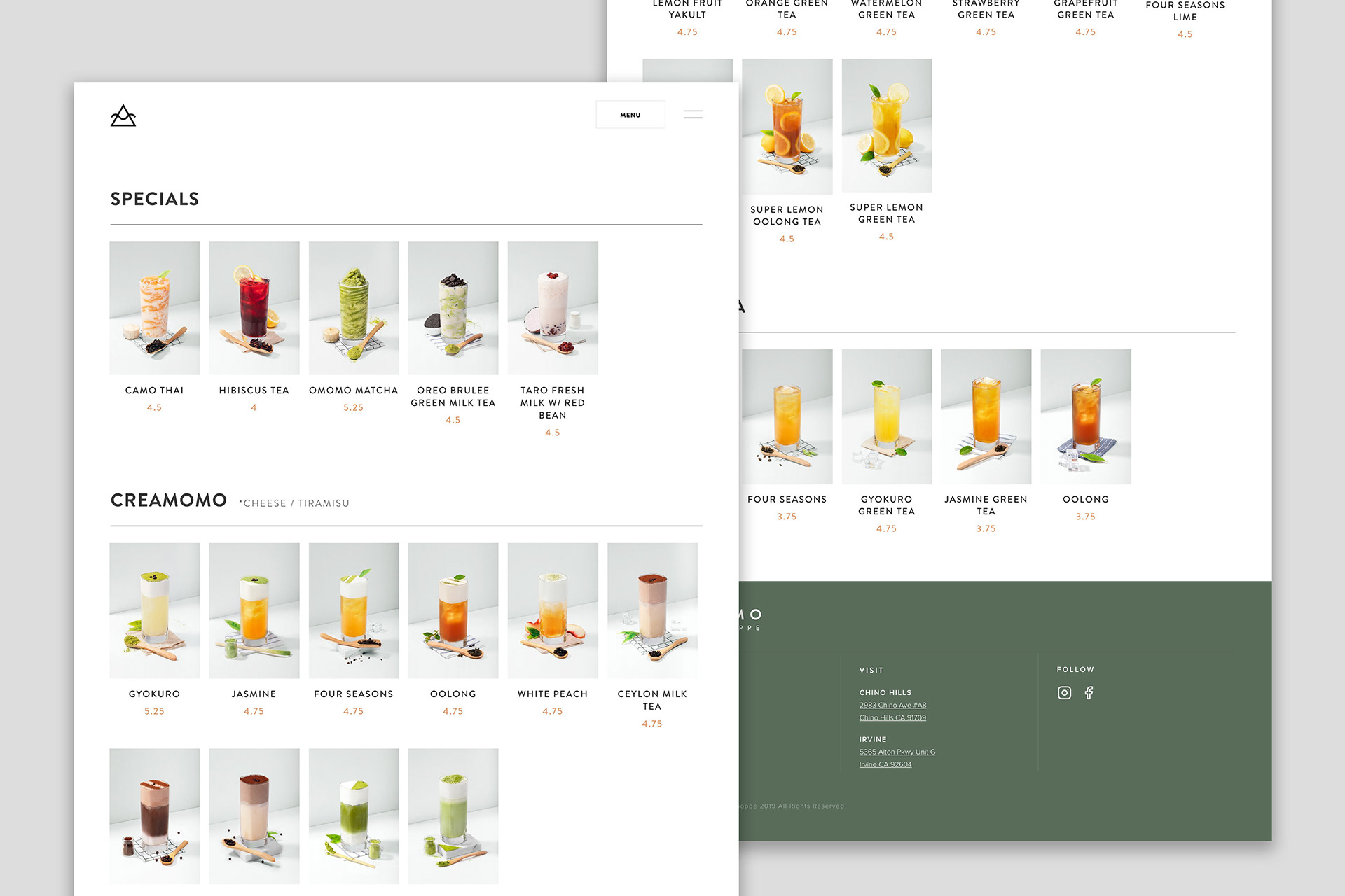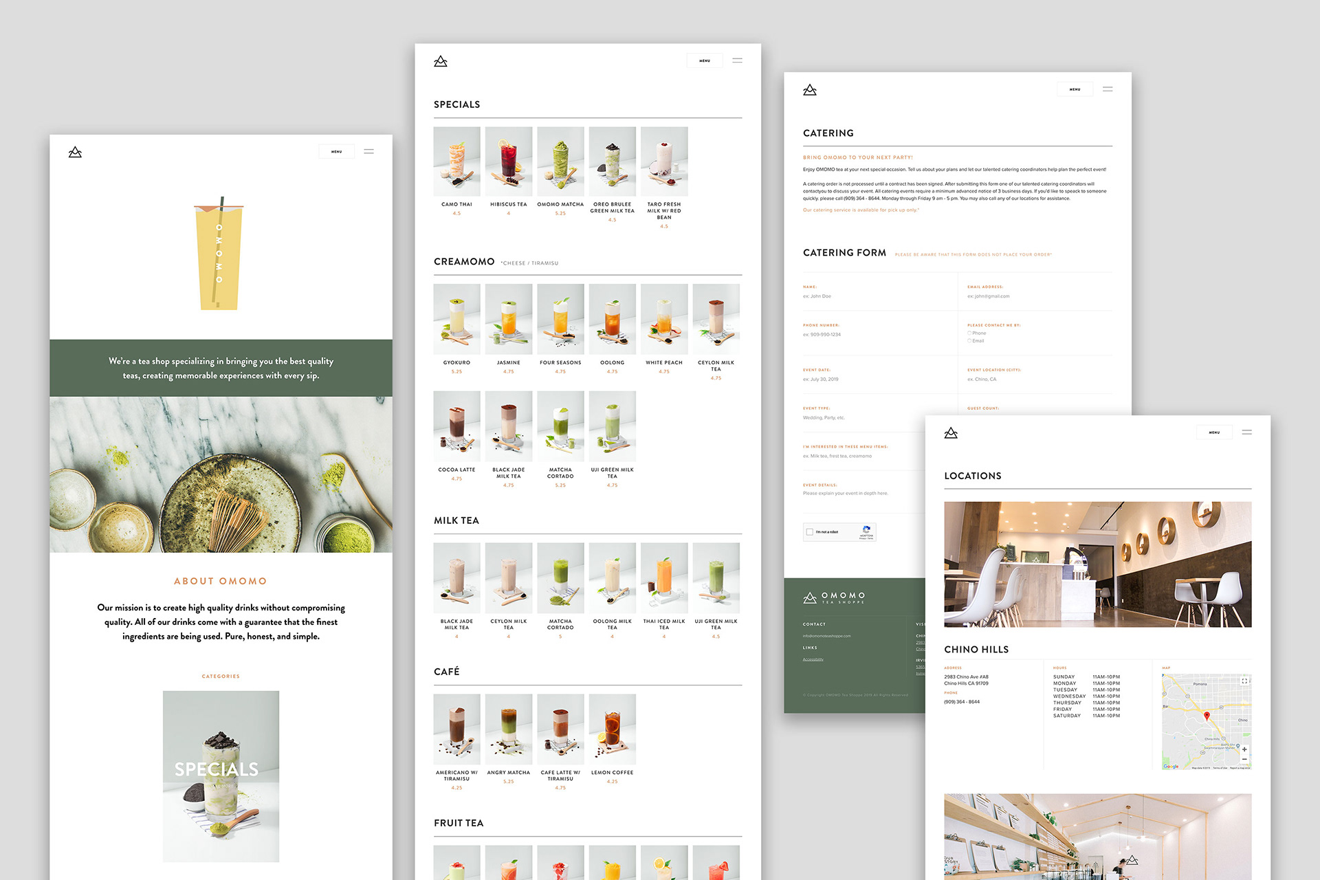 For this project, the goal was to design a clean, modern, and timeless website for OMOMO, a bubble tea shop, which included the homepage, menu, catering, career, and locations pages. I also did the animation that was featured on the homepage.